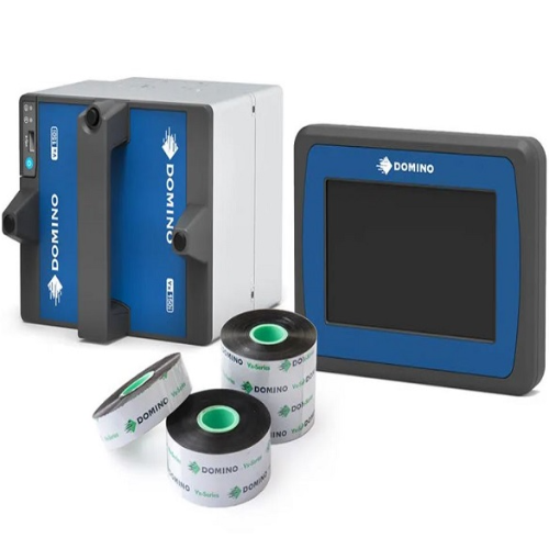 DOMINO V系列熱轉印機由打印頭、列印色帶及控制器組成。打印頭每英寸包含300個點 (DPI) ,這些點可迅速地連續開關,通過色帶將標識內容轉印到產品上,以列印所需標識 ‧適合在聚乙烯、聚丙烯、柔軟鋁材、沒有經過UV處理的標籤、紙張、高密度聚乙烯合成紙,扁平包裝膜柔軟包裝材料上進行打碼 ‧可安裝於立式或枕式包裝機上,滿足間歇式和連續式生產方式,安裝簡單,維護成本低廉 ‧列印高品質的文字、圖形、條碼、二維碼等各種標識,並可實現即時標識、序號、批號、資料庫連接等功能 ‧將確保您最大限度地減少停機時間、最大限度地提高吞吐量並降低整體擁有成本 (TCO)。