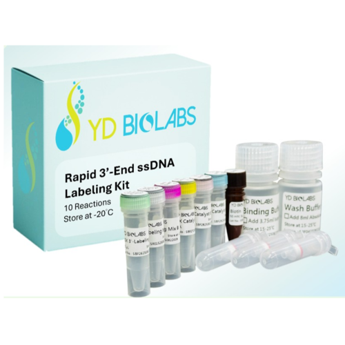 Rapid 3′-End ssDNA Labeling Kit 專為將各類螢光染料、半抗原或可點擊化學標籤共價連結至單股 DNA(ssDNA)3′ 端而設計。此試劑盒可直接作用於 20–150 nt 的 ssDNA,形成穩定的 3′ 端共價結構,適用於各類後續分子應用。
